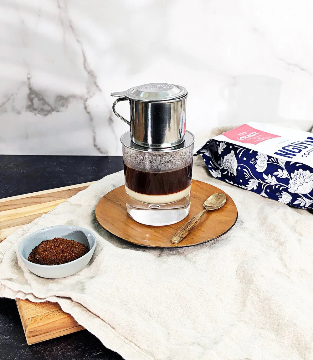 Houseblends or Robusta Coffee3Gramation Coffee. At its most basic Vietnamese Iced Coffee aka ca phe da is created with the use of medium-coarse dark. Place the phin over a heat-resistant glass.